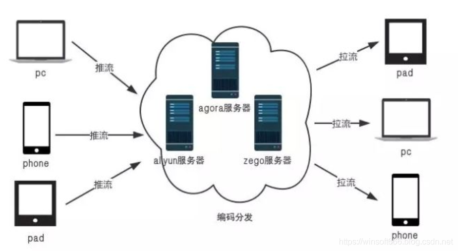 良好的 CDN 支持,目前主流的 CDN 厂商都有比较成熟的解决方案,另外也有可用的商用 SDK 方便集成,例如声网等,只要集成对应平台的 SDK 即可。由于有 CDN 的支持,相较于端对端的 webrtc 方式,其并发度高,适合多人直播场景。缺点: