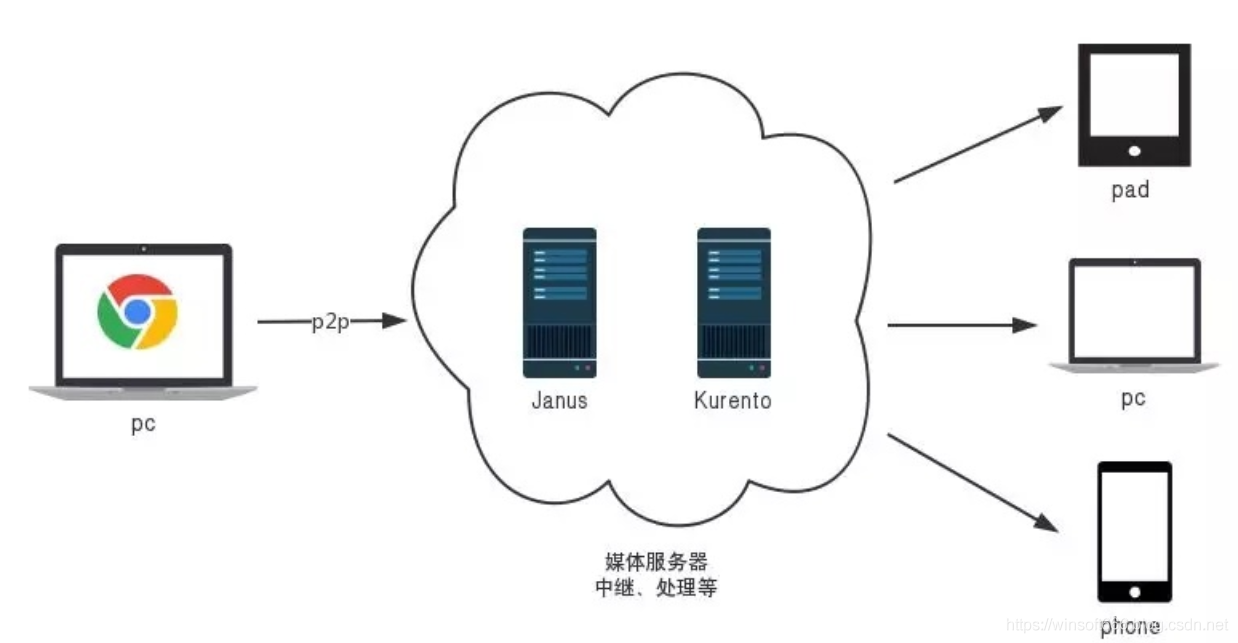 WebRTC的三种架构虽然两种类型的 WebRTC 服务器架构都有开源的解决方案,也存在一些商用的解决方案,但终究没有基于RTMP+CDN方式的直播方案成熟,这也就意味着一旦采用此方案需要投入更大的研发力度。
