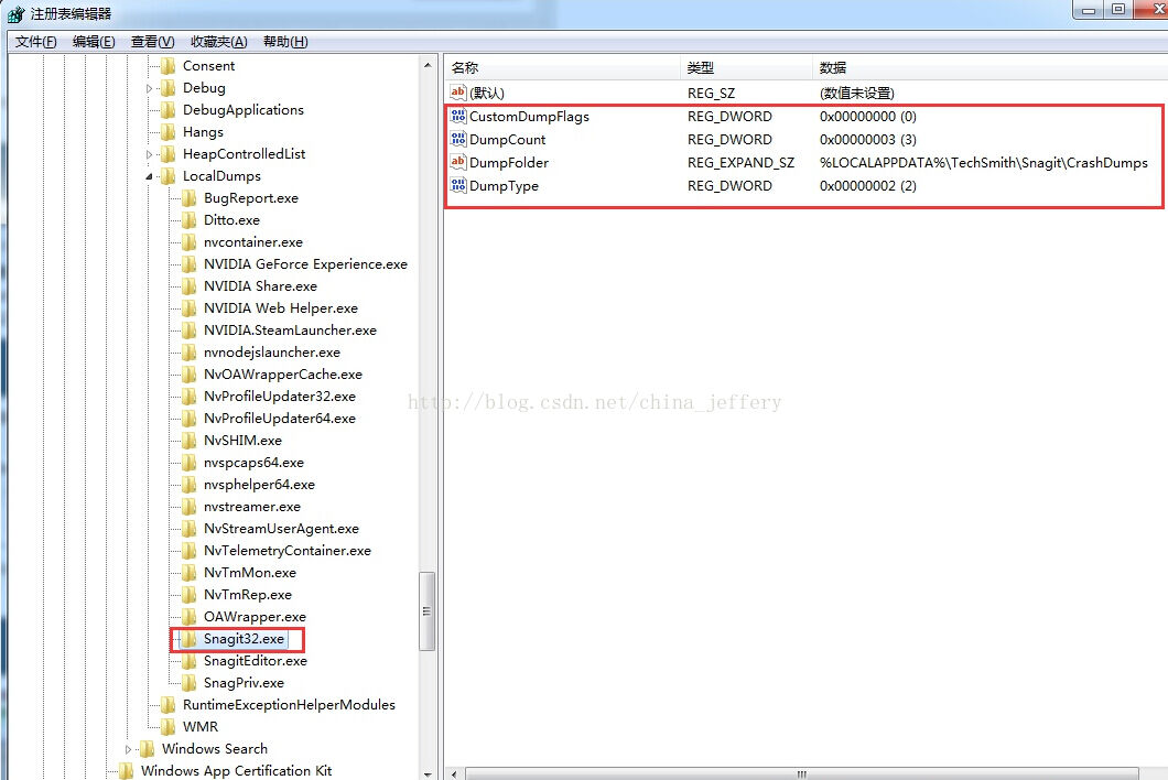 - 名称:DumpType,类型:REG_DWORD,Dump 类型(1-Mini dump, 2-Full dump),默认为 1.