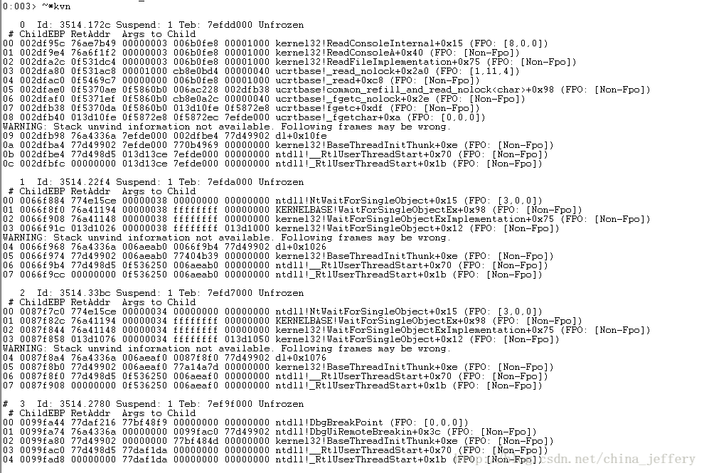 线程#1(ID:22f4)等待 00000038(互斥体 MutexA ),拥有 00000034(互斥体 MutexB)