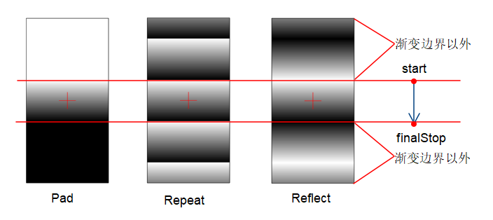 - ReflectSpread 方式将渐变边界内的模式不断往外镜像反射