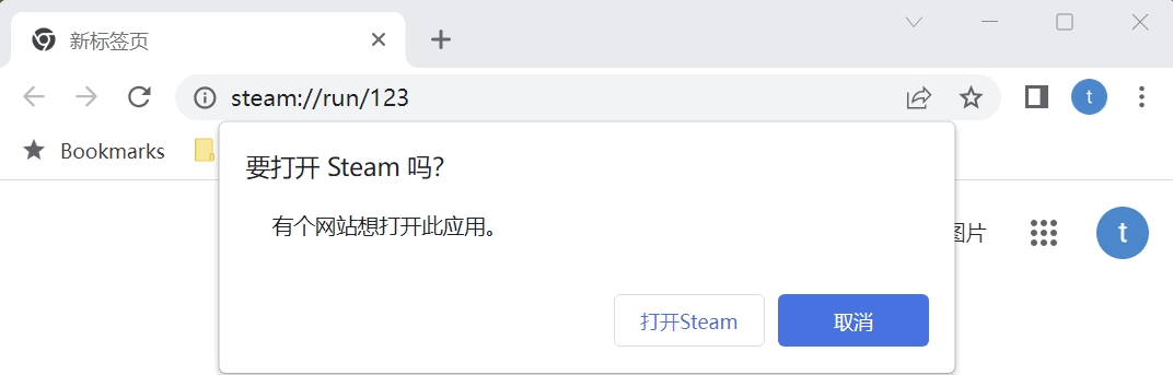 当电脑安装完 Steam 后,我们在浏览器中访问steam://run/123,浏览器会自动提示打开 Steam 程序。类似的功能在迅雷、QQ 等产品上也都有使用,本文讲述如何实现该功能。