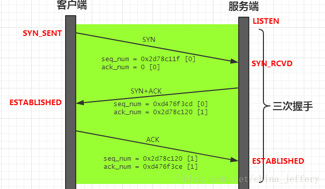 SYN、ACK、FIN、PSH等标志位的设置情况(大家可能注意到,除了第一个箭头上没有ACK之外,其他的箭头上都有ACK,这是因为ACK标记位只是用于标记 TCP 首部的32位确认序列号是否有效。在此之后的32位确认序列号一直有效,所以也就一直有ACK标记位。);箭头下发标出了该 TCP 包的序号和确认序号。- seq_num:表示 32 位的序号,紧跟其后括号[]中的是相对序号。