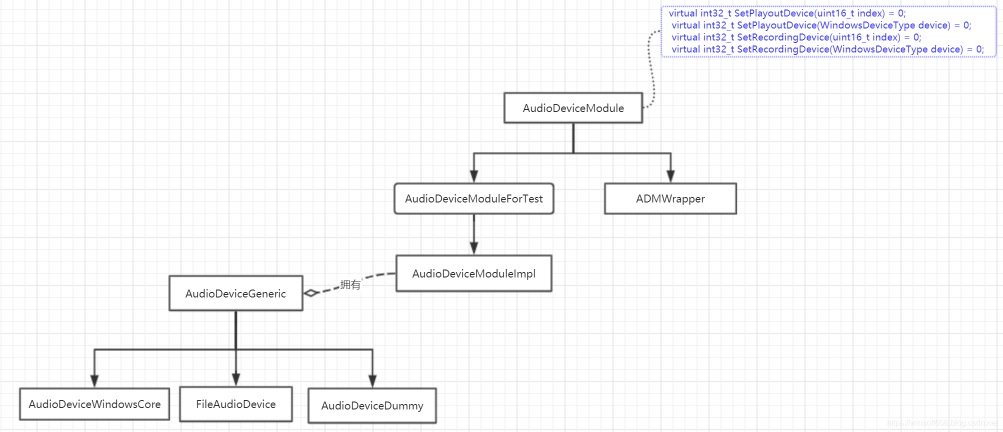 我们先来看看 WebRTC 中提供音频设备输入输出功能的类结构: