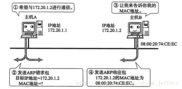 192.168.0.1, 但是最开始的时候主机 A 不知道192.168.0.1的 MAC 地址, 所以主机 A 广播一条 ARP 请求, 询问192.168.0.1的 MAC 地址。路由器(网关)收到该 ARP 请求, 发现自己就是 192.168.0.1,于是向主机 A 回复一条 ARP 应答包, 告诉主机 A 192.168.0.1 的 MAC 地址是 xxxGW。