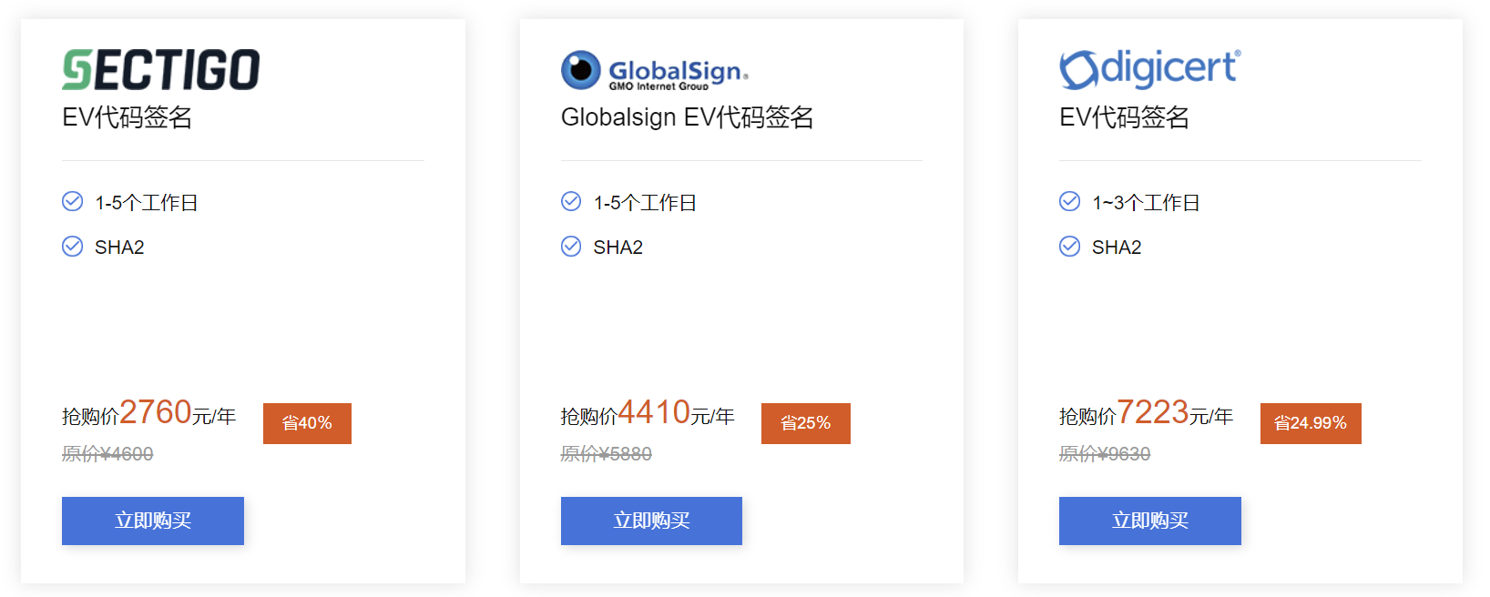 - 对客户端程序(.exe、.dll、.sys等文件)签名的代码签名证书。