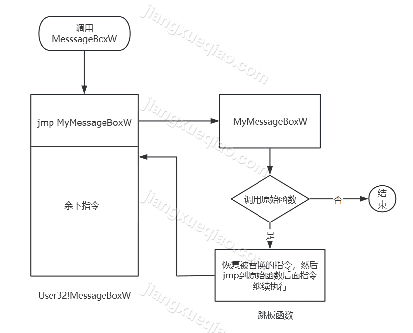 1 | PFN_MessageBoxW originalMessageBoxW = NULL; |