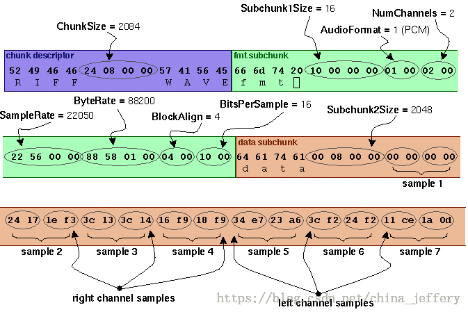 在介绍 WAVE 文件头之前,需要了解下音频编码的各个参数的含义: