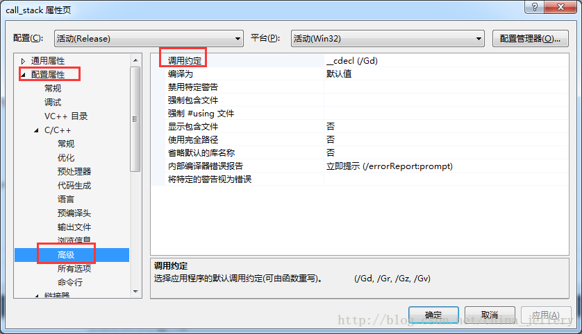 C++–>高级–>调用约定中进行调用约定的设置:
