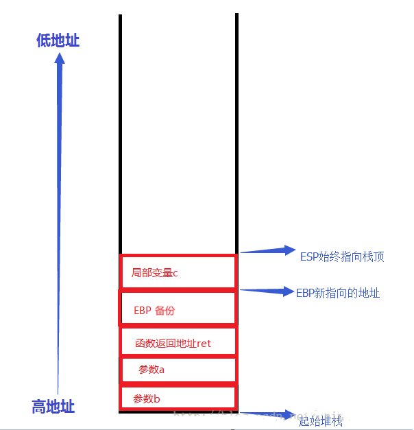 在函数调用过程中,参数入栈的过程如图: